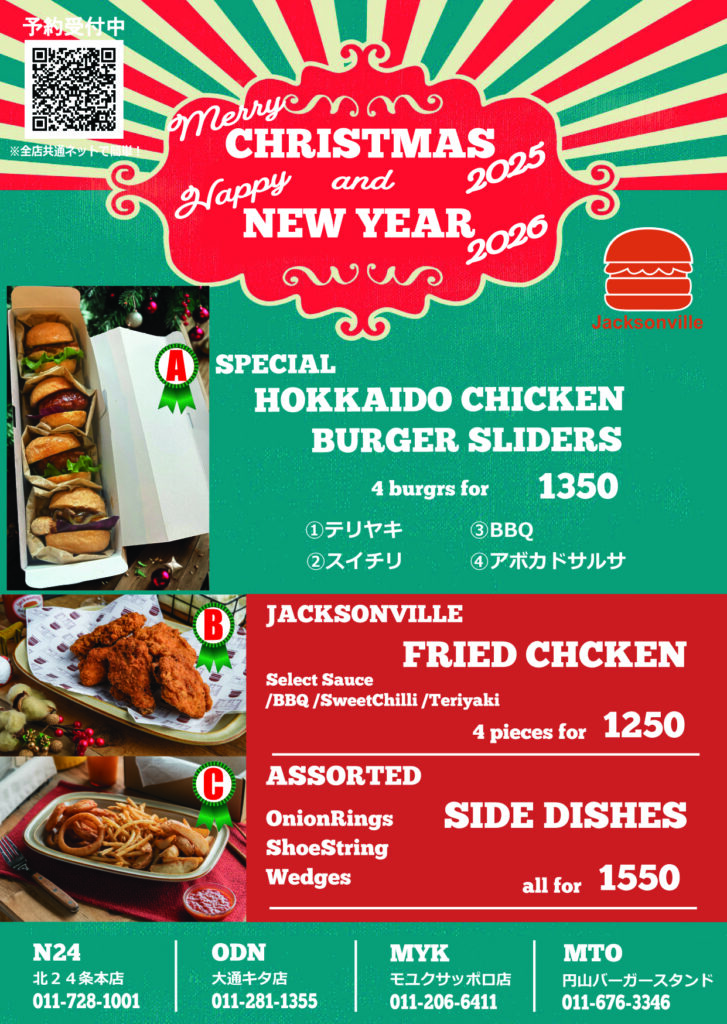 また、定番のジャクソンオリジナルフライドチキンやサイドメニュー詰め合わせもあります!こちらもパーティの仲間にぜひ加えてくださいね。笑 メリークリスマス!ハッピーニューイヤー!!